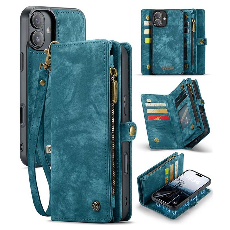 Funda tipo billetera multifuncional 2 en 1 Caseme 008 para iPhone 16 Plus - Azul
