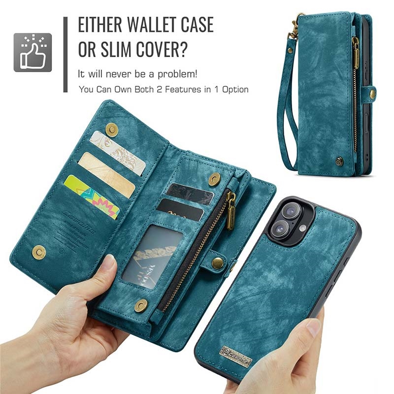 • Funda tipo billetera multifuncional 2 en 1 Caseme 008 para iPhone 16 Plus