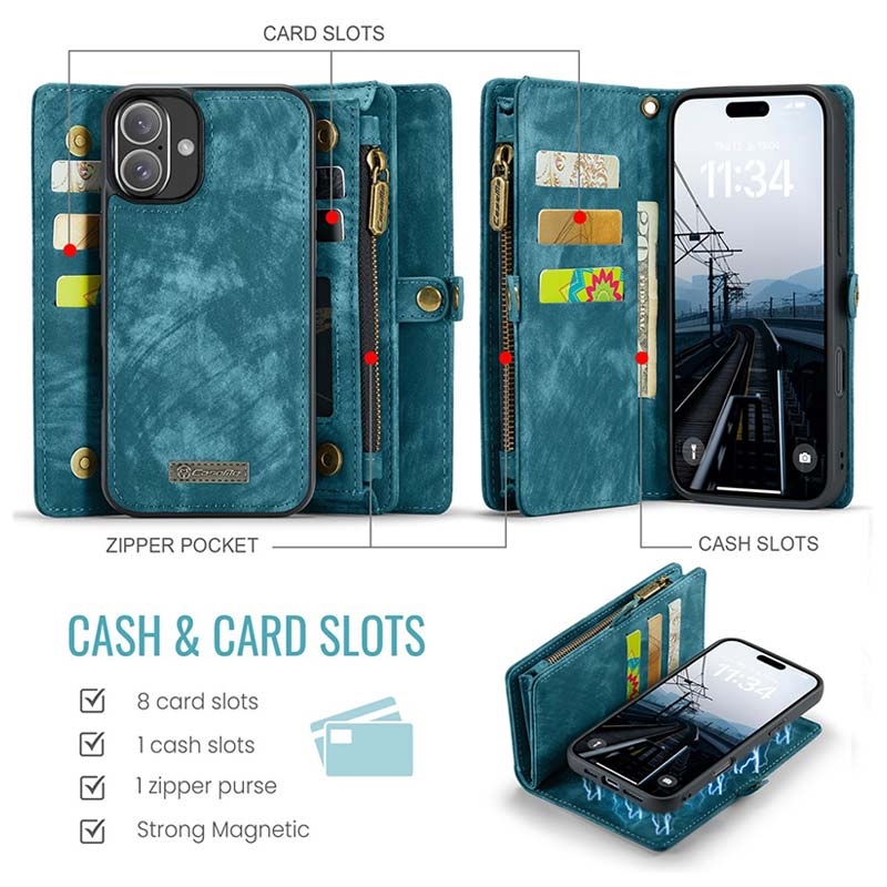 • Funda tipo billetera multifuncional 2 en 1 Caseme 008 para iPhone 16 Plus