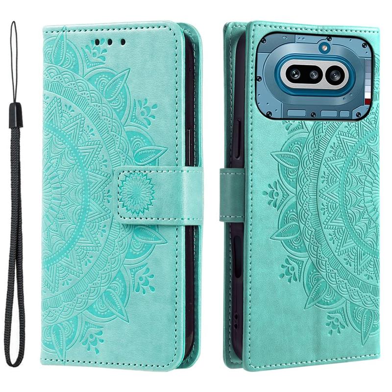 Funda tipo cartera Mandala con correa para la muñeca para Nothing Phone (4a) - Verde menta