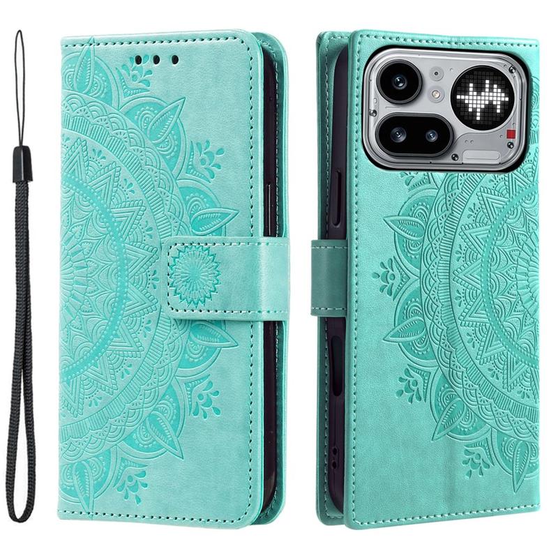 Funda tipo cartera Mandala con correa para la muñeca para Nothing Phone (4a) Pro - Verde menta