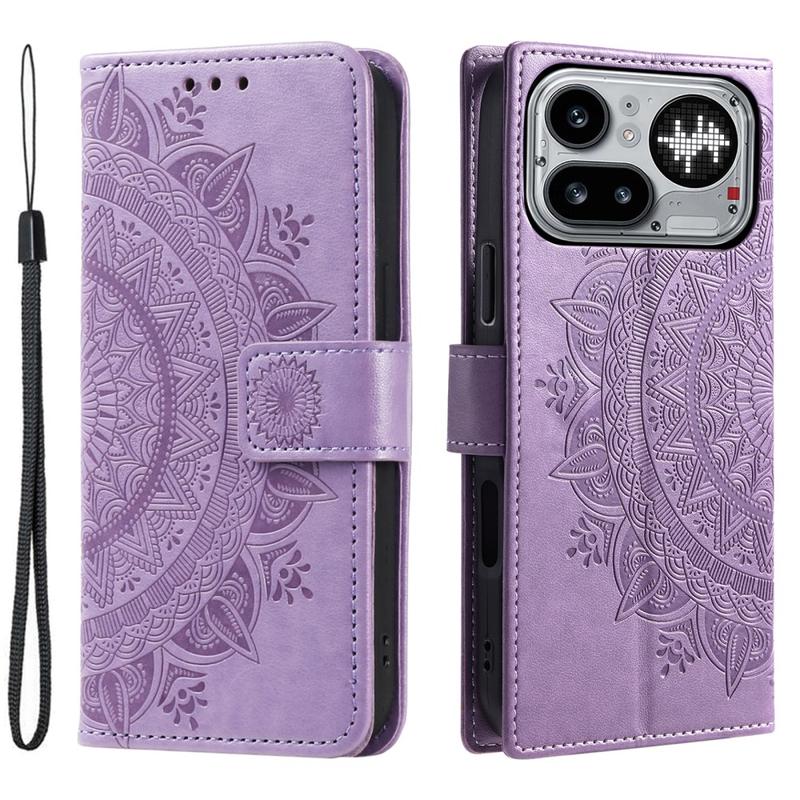 Funda tipo cartera Mandala con correa para la muñeca para Nothing Phone (4a) Pro - Morada