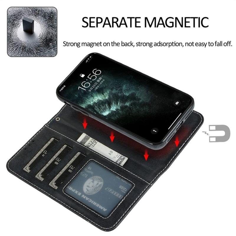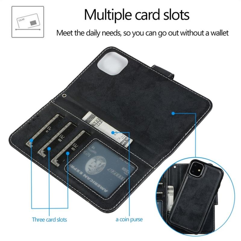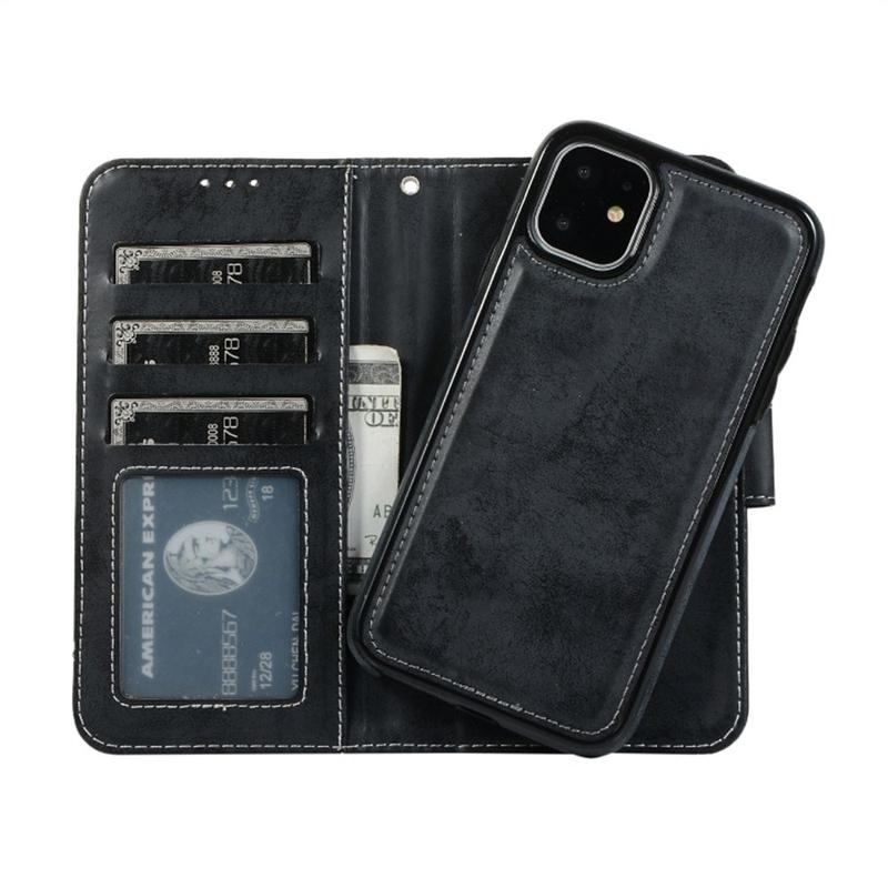 • Funda tipo cartera vintage 2 en 1 con tapa magnética extraíble para iPhone 11