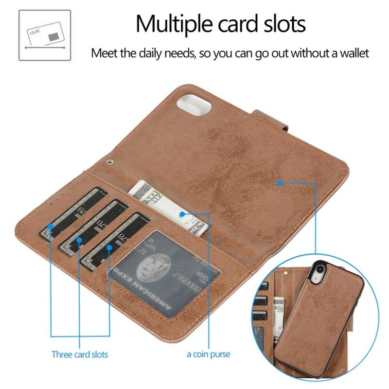 - 1 funda tipo cartera para iPhone XR con tapa extraíble