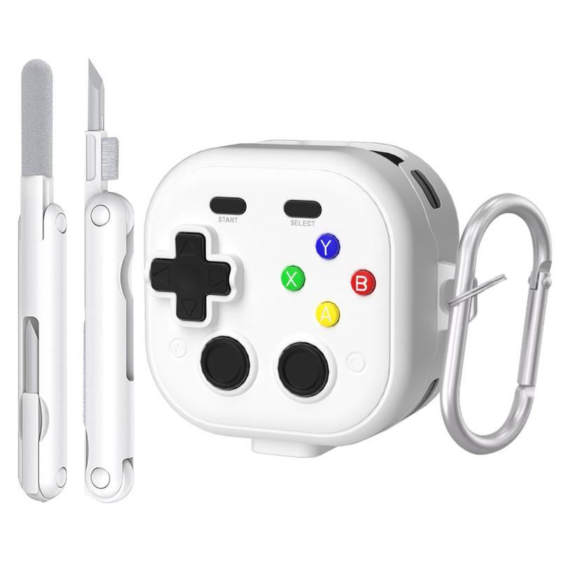 Funda tipo mando de videojuegos para Samsung Galaxy Buds 4/4 Pro con mosquetón y herramienta de limpieza - Blanca