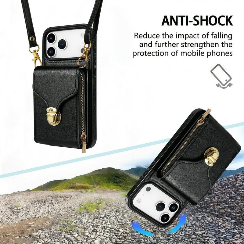 • Funda protectora todo en uno de TPU con cartera y correa para iPhone 17 Pro Max