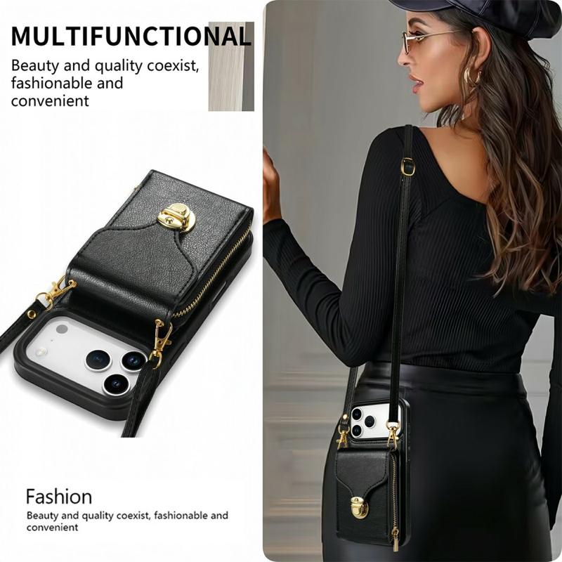 • Funda protectora todo en uno de TPU con cartera y correa para iPhone 17 Pro