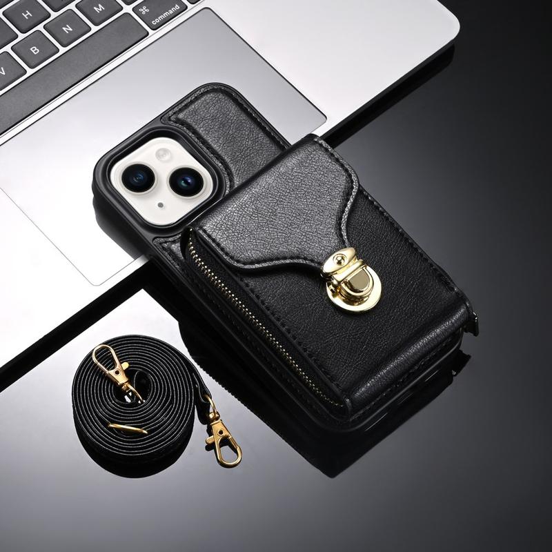 • Funda protectora todo en uno de TPU con cartera y correa para iPhone 15