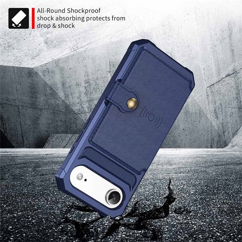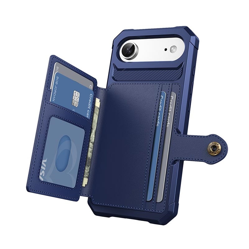 - La funda tipo cartera para iPhone Air cuenta con un cierre seguro a presión, diseño tipo cartera y varias ranuras para tarjetas, incluyendo un bolsillo para billetes