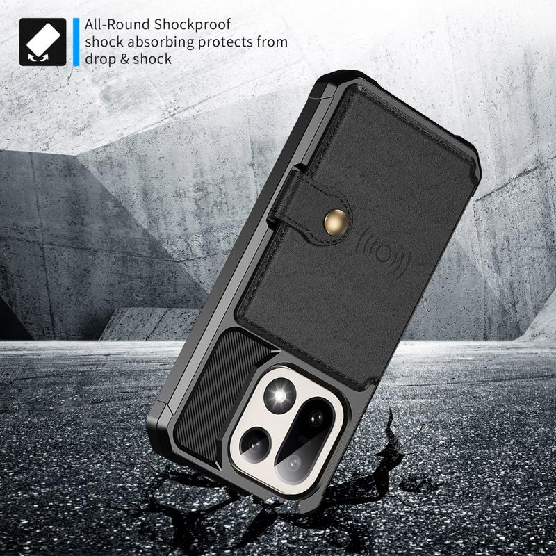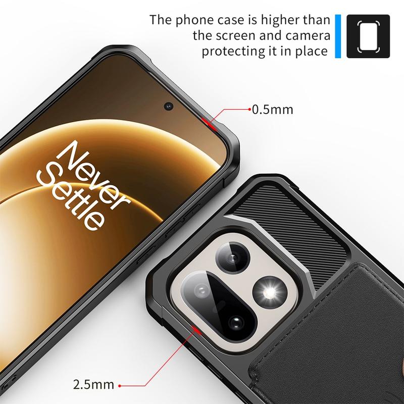 - La funda tipo cartera para OnePlus 15 cuenta con un cierre seguro a presión, diseño de cartera y varias ranuras para tarjetas con bolsillo para dinero