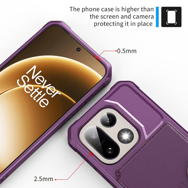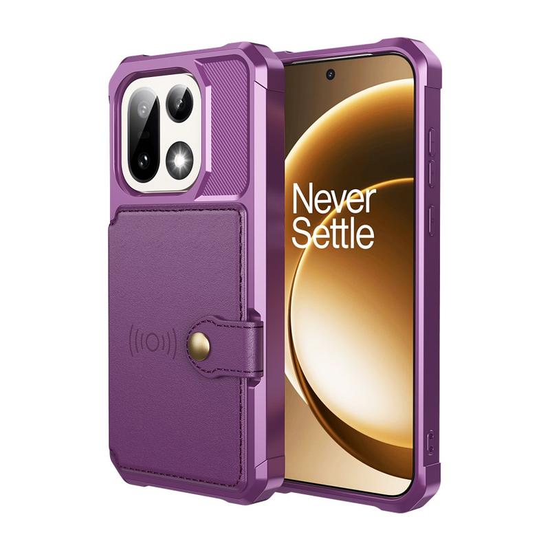 - La funda tipo cartera para OnePlus 15 cuenta con un cierre seguro a presión, diseño de cartera y varias ranuras para tarjetas con bolsillo para dinero