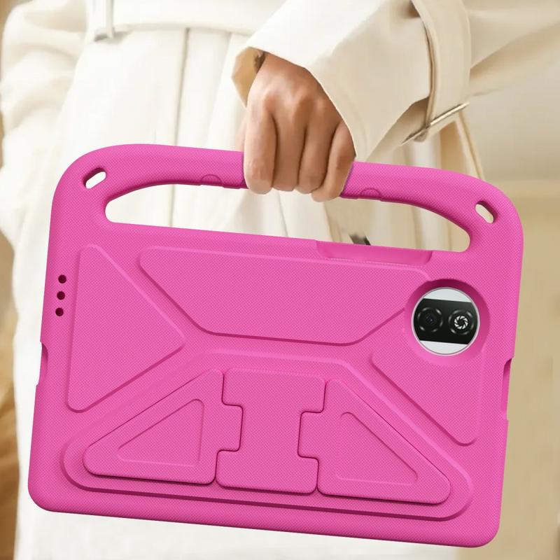 Proteja su Honor Pad X7 con esta interesante funda para niños. El Honor Pad X7 Los niños que llevan un estuche a prueba de golpes están hechos de material EVA ecológico y no tóxico, por lo que es seguro para los niños. Esta funda permite una protección adecuada para la tableta y proporciona una visualización de manos libres y un fácil acceso a todas las características.
