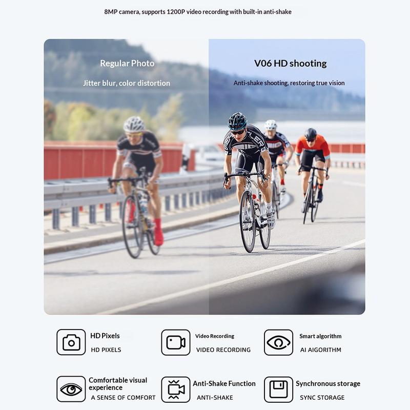 Las gafas inteligentes V06 AI combinan grabación HD manos libres, resistencia a las inclemencias meteorológicas, audio estéreo e interacción de voz inteligente en un solo dispositivo portátil, ideal para ciclistas, viajeros y usuarios que desean grabar vídeos cómodamente sin necesidad de equipo adicional.