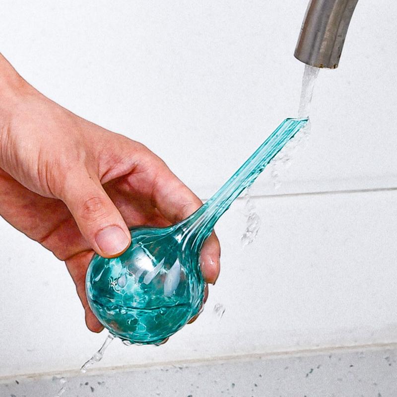 Cada globo de riego está hecho a mano en cristal, combinando el cuidado práctico de las plantas con una decoración elegante. El colorido acabado añade un toque vibrante a macetas, jardineras y recipientes de jardín, a la vez que se integra de forma natural en cualquier hogar o entorno exterior.