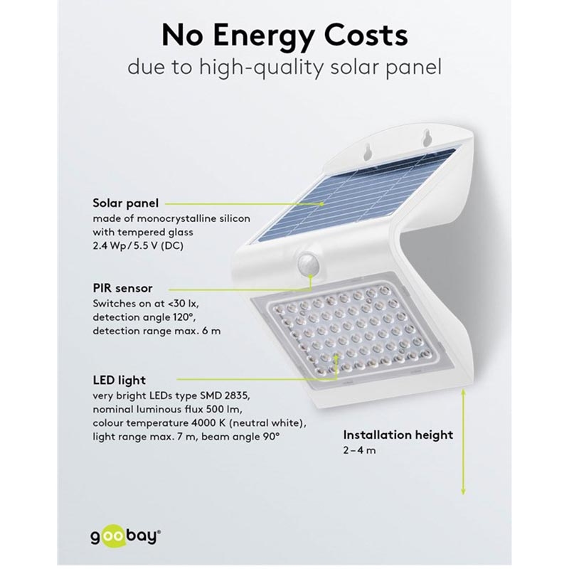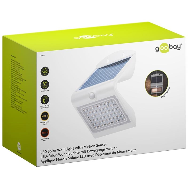 Goobay Aplique Solar LED 4W con Sensor de Movimiento PIR - Lámpara Solar de Exterior Resistente al Agua IP65 (500 lm, 4000K) - Batería Reemplazable