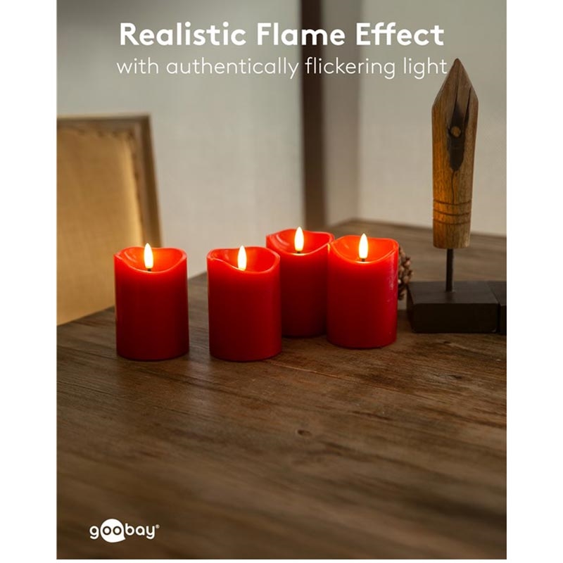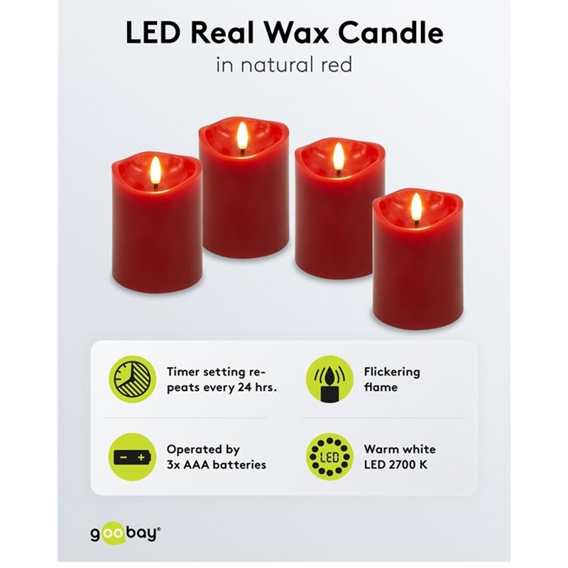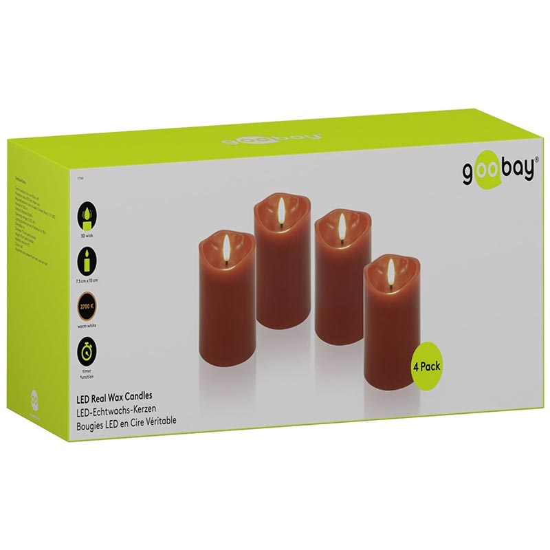Goobay LED Velas de Cera Real - Llama 3D, Función Temporizador, Blanco Cálido 2700 K, Funciona con pilas