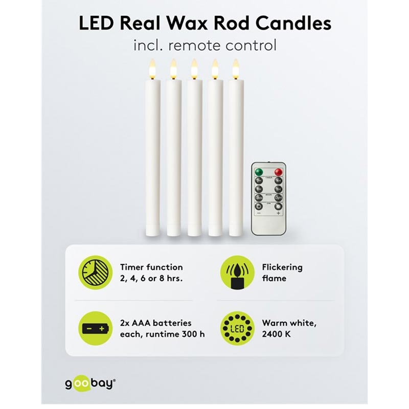 Goobay Juego de 5 velas LED de cera auténtica - Llama 3D, mando a distancia, temporizador, regulable, blanco cálido 2400 K