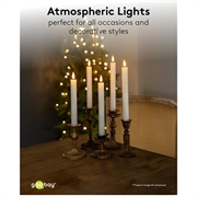 Estas velas cónicas LED ofrecen el encanto atemporal de las velas de cera reales sin los riesgos de seguridad. La llama parpadeante realista, el brillo ajustable y el largo tiempo de funcionamiento crean un ambiente cálido y acogedor en cualquier lugar. El mando a distancia facilita el manejo, mientras que el temporizador garantiza el encendido automático diario. Duradero, elegante y versátil, este conjunto es ideal para su uso durante todo el año y especialmente valioso durante las épocas festivas, en las que el ambiente y la seguridad son igual de importantes.