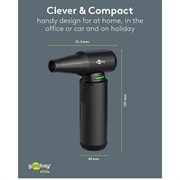 El Goobay Air Duster Superior es la alternativa definitiva a los bidones de aire comprimido. Con un asombroso motor sin escobillas de 130.000 rpm y una potencia de 180 W, proporciona una fuerza de soplado inigualable para eliminar el polvo, los pelos de mascotas y los residuos de teclados, carcasas de PC, interiores de automóviles, bancos de trabajo y mucho más. Recargable, sin cables y con un diseño sostenible, este plumero de aire ofrece el máximo rendimiento en casa, en la oficina o sobre la marcha.