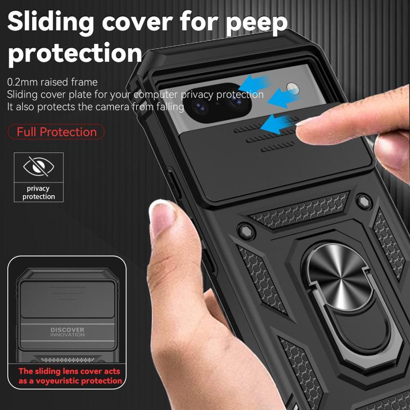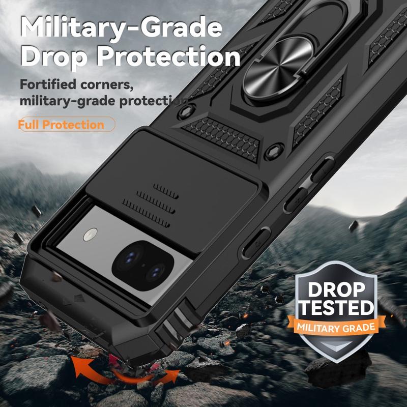 • Rotary Ring Hybrid Case with Camera Shield for Google Pixel 8a