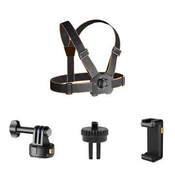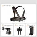 • GP-032 Set de correa para pecho para cámara de acción: base magnética de liberación rápida, mini adaptador de 1/4" y clip para teléfono para grabación POV
