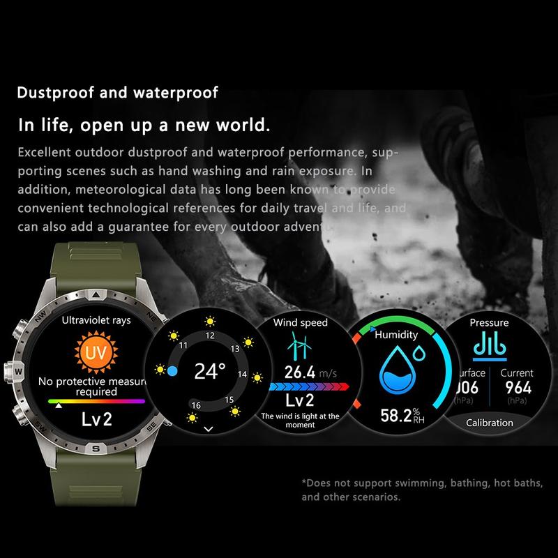 El reloj inteligente para exteriores GT45 está diseñado para usuarios que exigen durabilidad, claridad y seguimiento inteligente de la salud en cualquier entorno. Su pantalla LCD HD 400×400 de 1.6 pulgadas ofrece una visibilidad brillante, protegida por el cristal King Panda de última generación, un material conocido por ser hasta cinco veces más resistente que el cristal de calcio sódico convencional. Tanto si estás en la ciudad como en el campo, el GT45 proporciona datos precisos sobre el ejercicio, indicadores meteorológicos en tiempo real y una fiable protección IP67 contra el agua para apoyar tu estilo de vida activo.