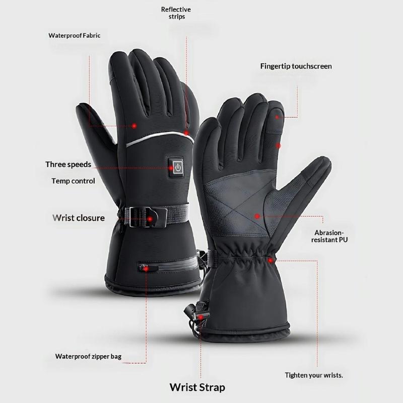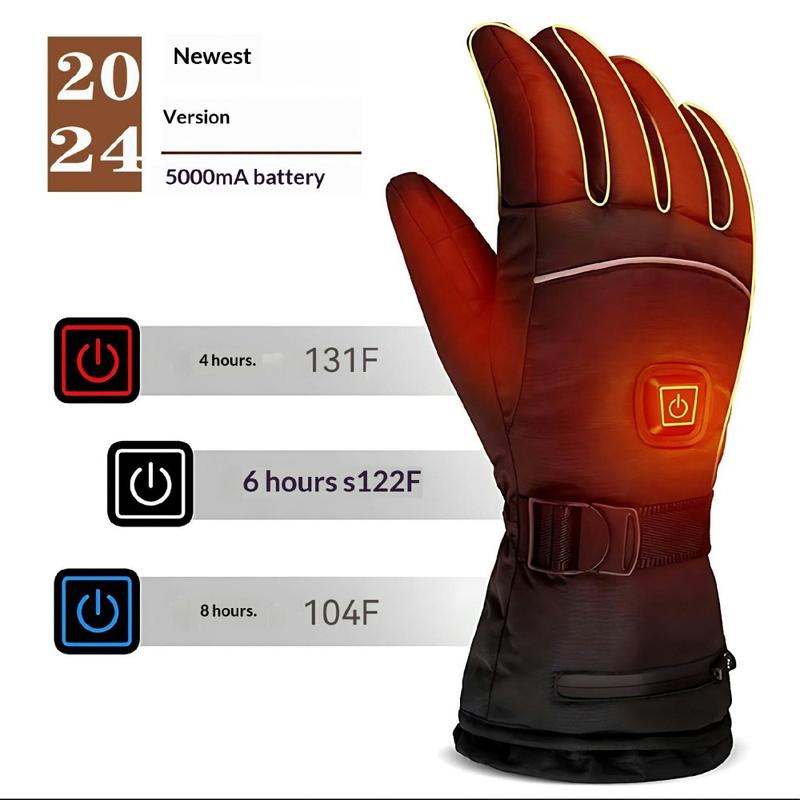 Guantes eléctricos calefactables con 2 baterías de 5000mAh, compatibles con pantallas táctiles, diseño impermeable y 3 niveles de calor, para uso al aire libre en invierno