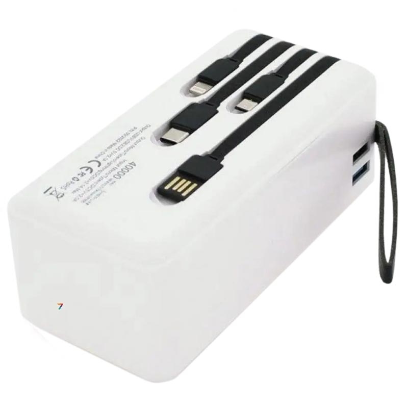 Hepu XL HP210 40000mAh Power Bank - Carga rápida multipuerto con cables USB-C/Lightning/USB-A/MicroUSB incorporados e indicador de carga.