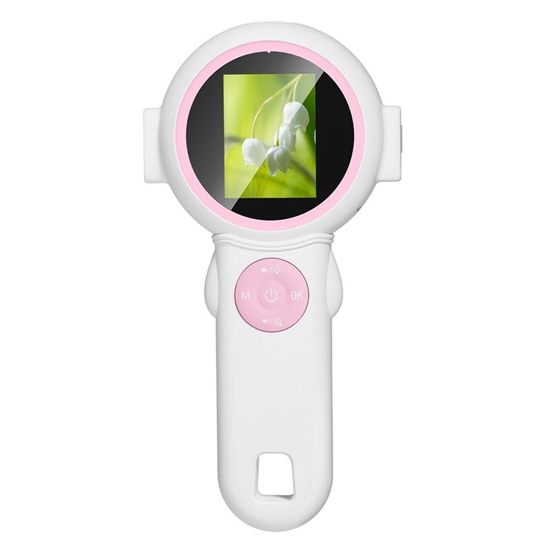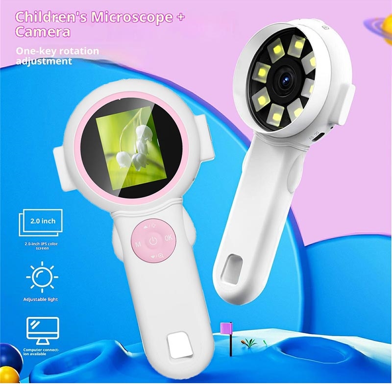 HM020J Lupa digital para niños / Mini microscopio de mano y cámara con luces LED, pantalla IPS de 2 pulgadas