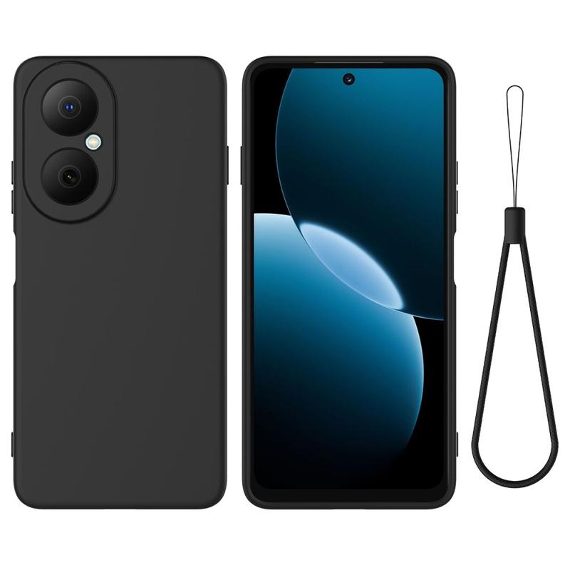 Huawei Nova Y73 Funda de silicona líquida con correa de mano - Negro
