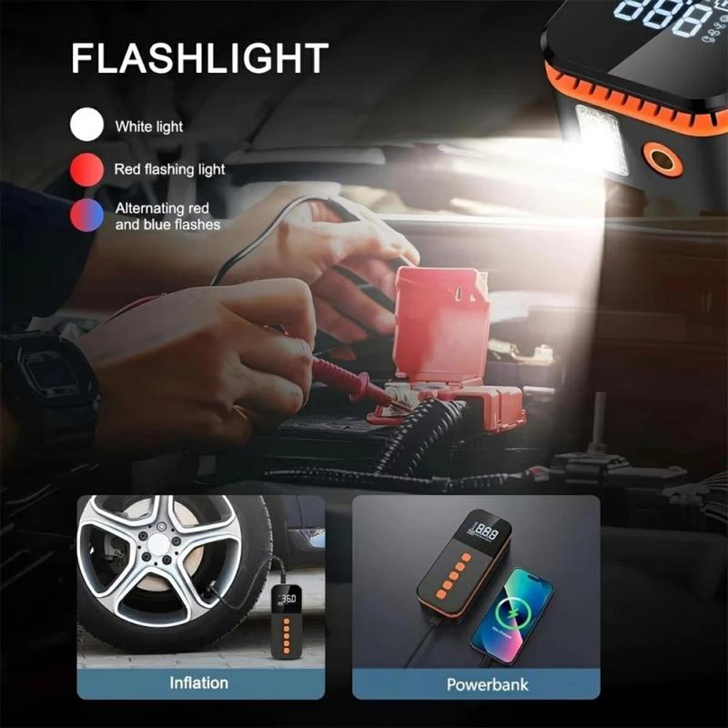 - Asistencia de emergencia en carretera: Infla los neumáticos rápidamente cuando te quedes tirado.