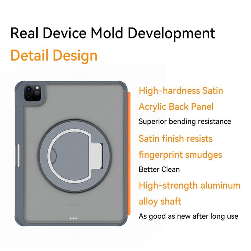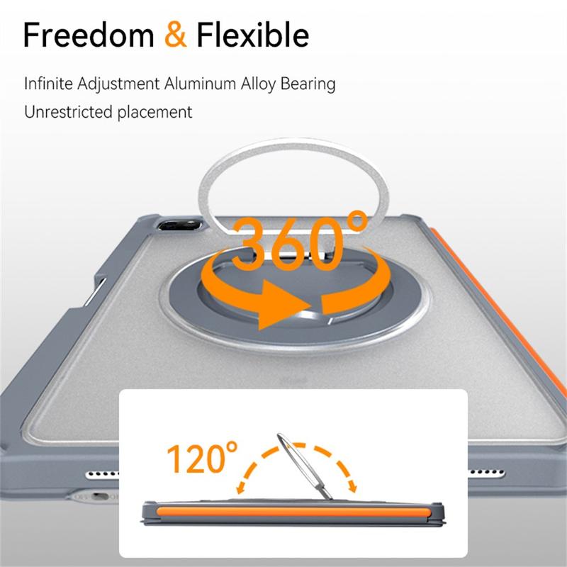 - Soporte giratorio de 360° - Equipado con una bisagra de aleación de aluminio reforzada, este soporte ofrece una rotación suave de 360° y múltiples ángulos de visión estables, ideal para escribir, hacer bocetos o videollamadas.