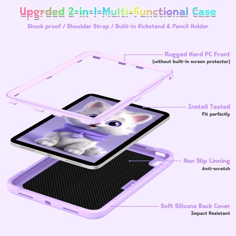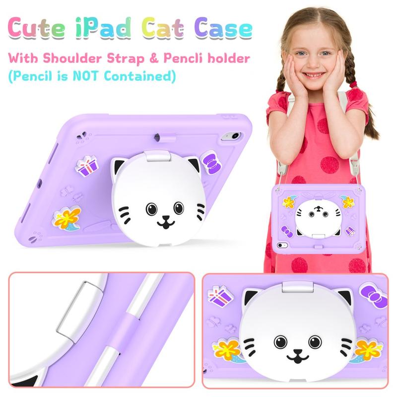 Funda híbrida con forma de gato con soporte, correa para el hombro y soporte para stylus para iPad (2022), iPad (2025)