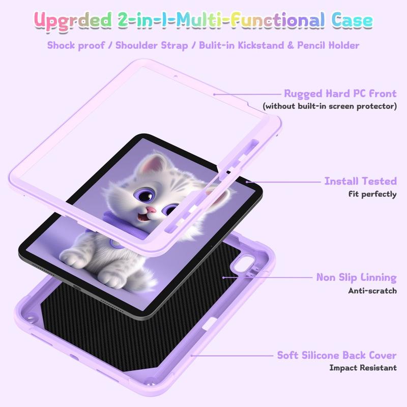 Funda híbrida con forma de gato con soporte, correa para el hombro y soporte para stylus para iPad Air 11 (2024), iPad Air 11 (2025)