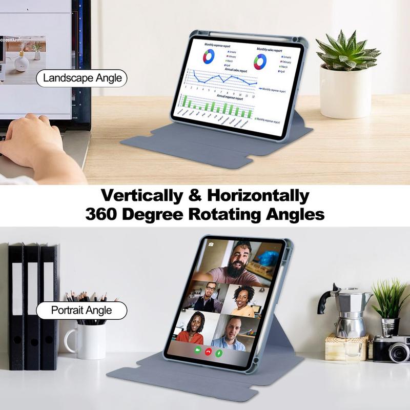 Las fundas giratorias para tablet se hicieron populares a medida que las pantallas de los dispositivos se hacían más grandes e indispensables para las tareas cotidianas. El giro de 360° proporciona ventajas ergonómicas, ayudándole a conseguir el ángulo ideal para ver y escribir. Además, este diseño minimiza la tensión en el cuello al permitirle colocar la pantalla a la altura y orientación más cómodas, mejorando su experiencia general con la tableta.