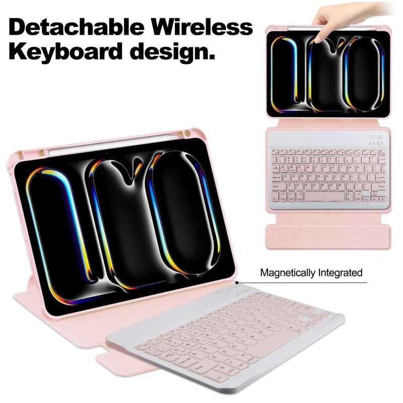 Disfruta de una mayor comodidad y protección para tu iPad Pro 11 2024/2025. Esta versátil funda cuenta con un soporte giratorio de 360 grados que ofrece opciones de visualización horizontal y vertical para realizar varias tareas a la vez sin esfuerzo. Fabricada a partir de una mezcla de piel de PU y acrílico, ofrece una resistencia duradera a arañazos e impactos, al tiempo que mantiene un aspecto elegante y moderno. El teclado integrado mejora la productividad sobre la marcha, lo que lo convierte en la mejor opción para estudiantes, profesionales y usuarios cotidianos por igual.