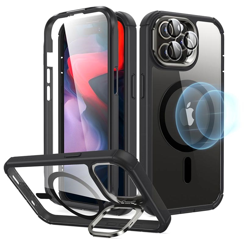 iPhone 15 Pro Max ESR Armor Tough Kickstand HaloLock MagSafe Case - Black / Clear