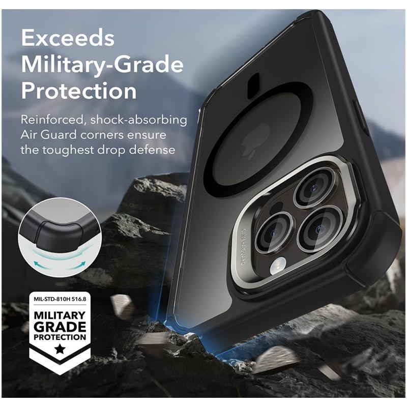 - Reinforced with absorbing Air Guard corners - Military Grade certificate (MIL-STD-810H 516.9)