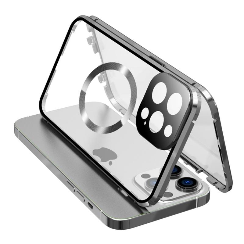 iPhone 15 Pro Max Funda de Doble Cara de Cristal Templado HD Compatible con MagSafe - Plata