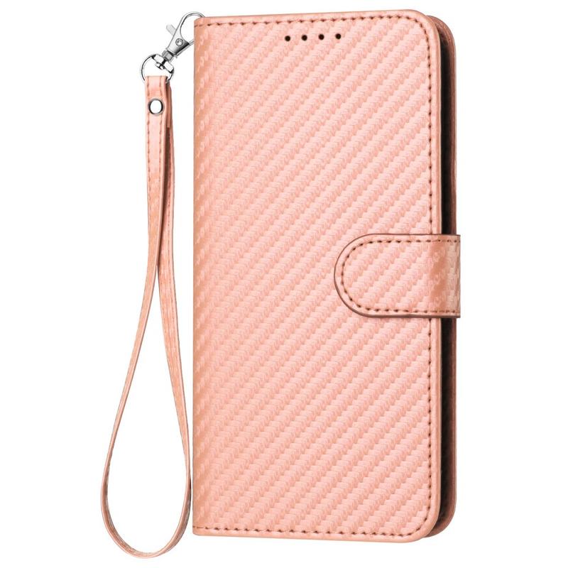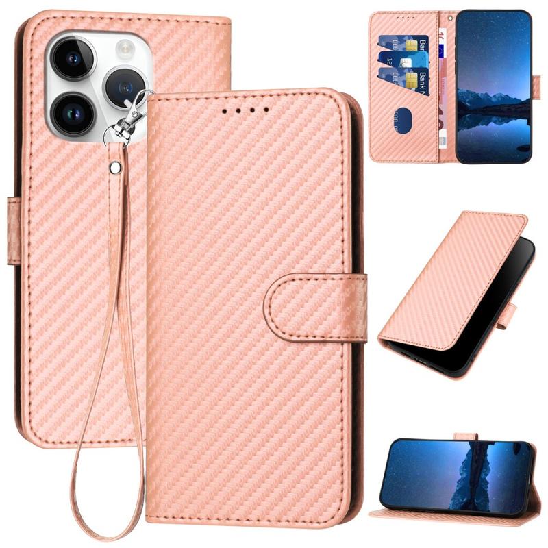 iPhone 15 Pro Max Funda Cartera Premium con Correa - Textura Fibra de Carbono - Rosa carbón