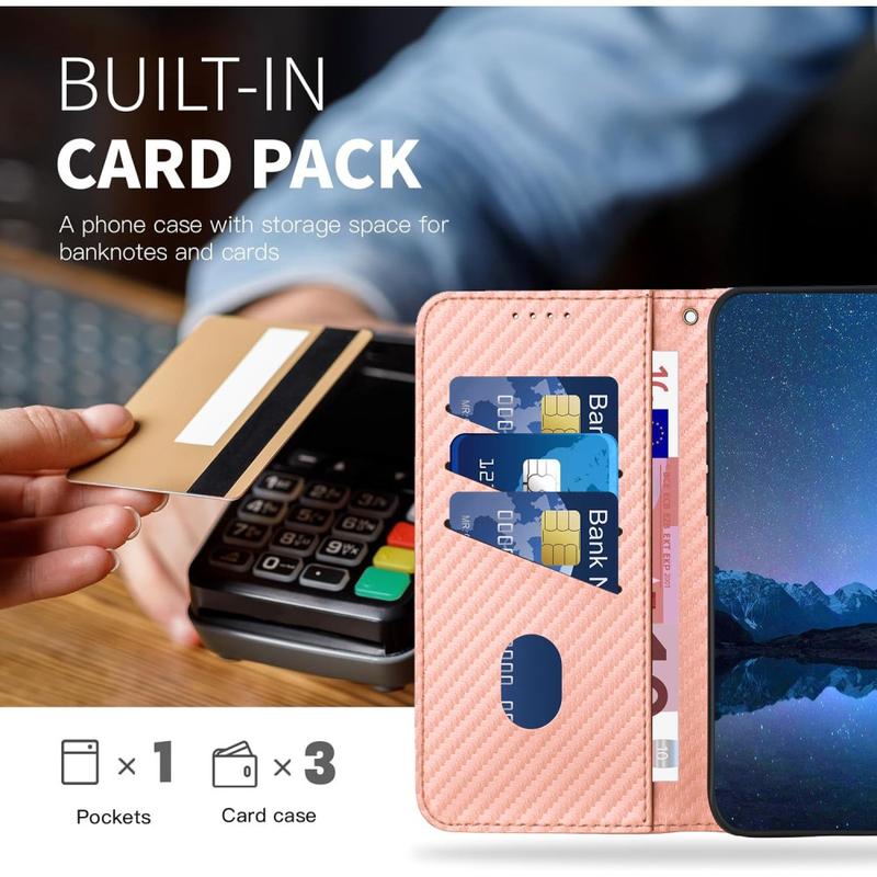 - Textura de fibra de carbono de primera calidad: fabricada en poliuretano (PU) duradero con un refinado patrón de fibra de carbono y una suave carcasa interior de TPU para una absorción de impactos y una resistencia a los arañazos fiables.
