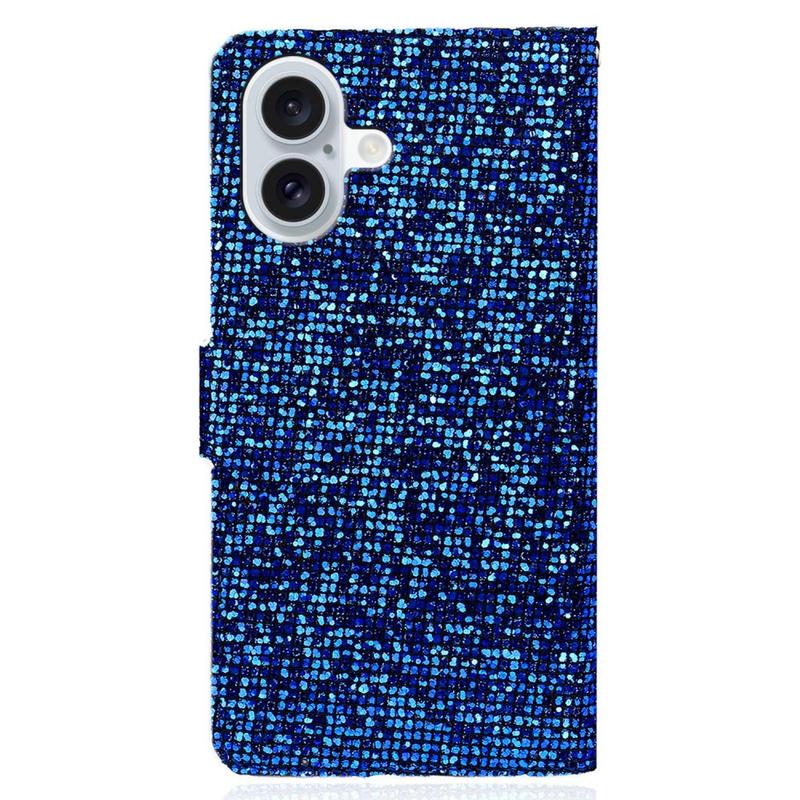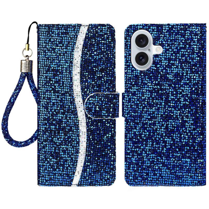 iPhone 16 Funda elegante con purpurina para cartera - Azul