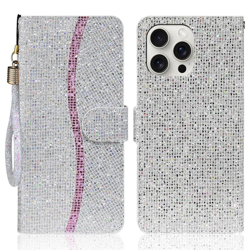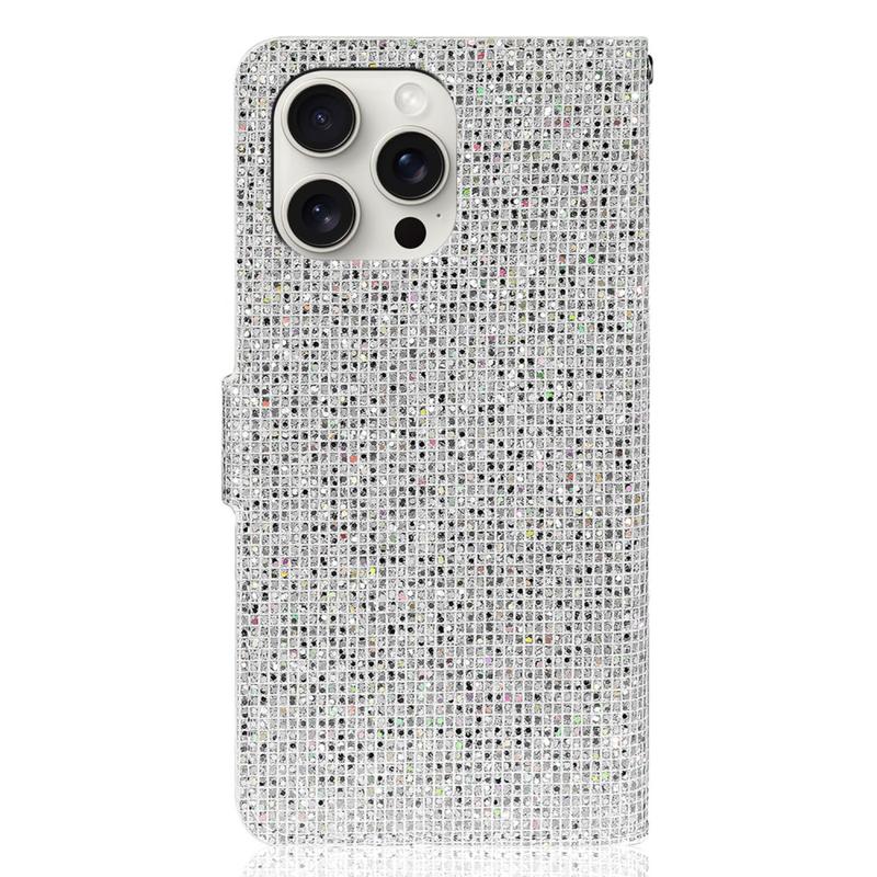 iPhone 16 Pro Max Funda elegante con purpurina para cartera - Plata