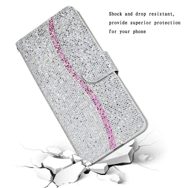 Eleve el estilo de su iPhone 16 Pro Max con esta elegante funda tipo cartera con purpurina. El polvo brillante y el diseño único darán a tu dispositivo un aspecto distintivo y a la moda. Los materiales de TPU y PU hacen que la funda sea ligera y fácil de instalar, mientras que el práctico diseño combina una cartera y una funda de teléfono en una cómoda unidad. El diseño de soporte permite tener las manos libres para ver películas o leer, y el cierre magnético ultrarresistente mantiene seguros todos sus objetos de valor. Con recortes precisos para un acceso completo a los puertos, botones de función, altavoces y cámara, esta funda ofrece protección contra el desgaste diario, arañazos, marcas y rozaduras. La práctica correa facilita su transporte.