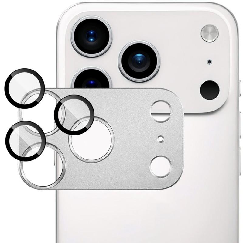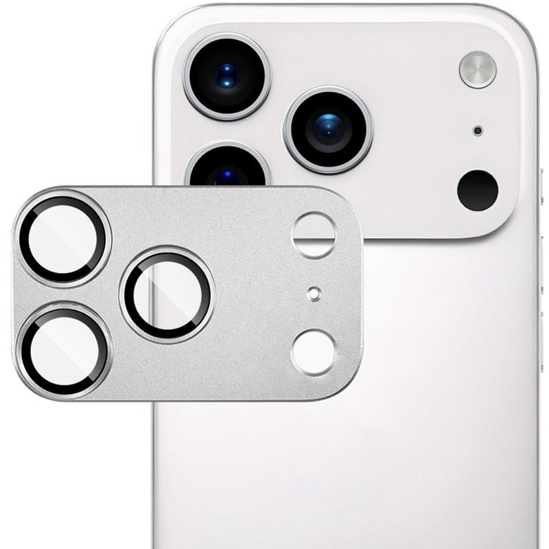 iPhone 17 Pro Max Imak Protector de lente de cámara de metal y vidrio templado de cobertura completa - Plata