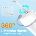 - Boquilla giratoria de 360° para una limpieza precisa alrededor de las encías, los espacios interdentales y las muelas del juicio