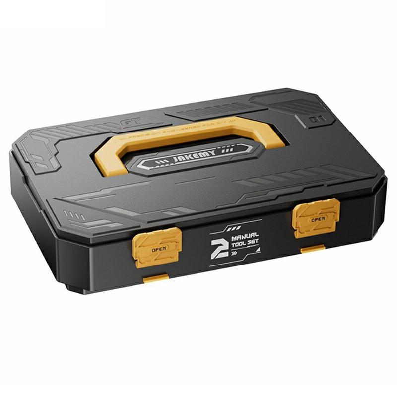 El kit de herramientas de reparación doméstica JAKEMY JM-8199 257 en 1 es una solución completa para el mantenimiento del hogar, proyectos de bricolaje y reparaciones profesionales. Con un diseño modular, permite combinaciones personalizables para diferentes escenarios de reparación, por lo que es muy versátil. El destornillador manual 2 en 1 incluido admite puntas H4.0 y H6.3 sin adaptadores y está equipado con un conector de doble uso para una rápida inserción ciega. Su mango ergonómico aumenta el par de apriete en un 20%, proporcionando hasta 5NM para un rendimiento eficiente. Con un práctico sistema de almacenamiento de puntas y un diseño portátil, este juego de herramientas le garantiza que estará preparado para cualquier tarea de reparación en casa o sobre la marcha.