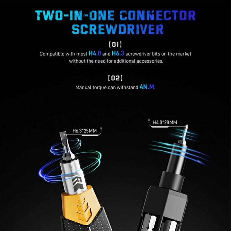 - Destornillador 2 en 1 - Conector de doble uso compatible con puntas H4.0 y H6.3 sin adaptadores.