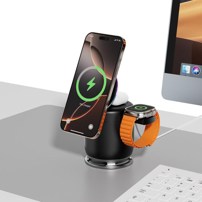 - Carga 3 en 1: teléfono de 15W + reloj de 2,5W + auriculares de 5W simultáneamente