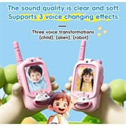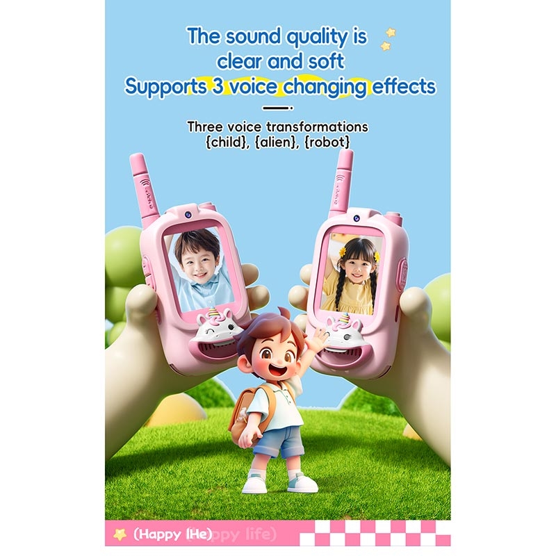 El walkie-talkie de vídeo JK200 combina tecnología, seguridad y diversión. Con comunicación por vídeo en tiempo real, efectos de cambio de voz y un diseño resistente apto para niños, es imprescindible para aventuras creativas y conectadas.